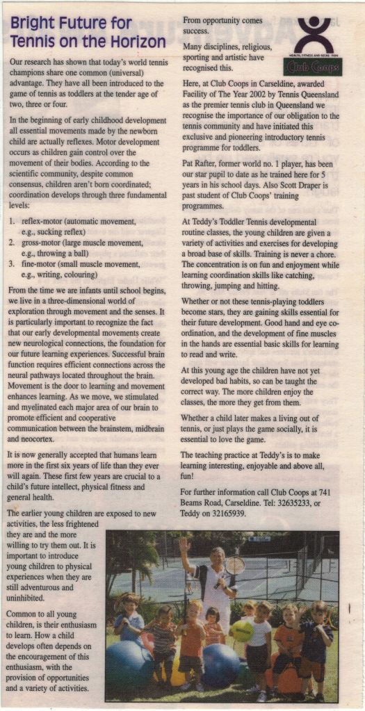 “Among other physical activities, I incorporate tennis movements into my Toddler Tennis early childhood developmental routine.” – Teddy