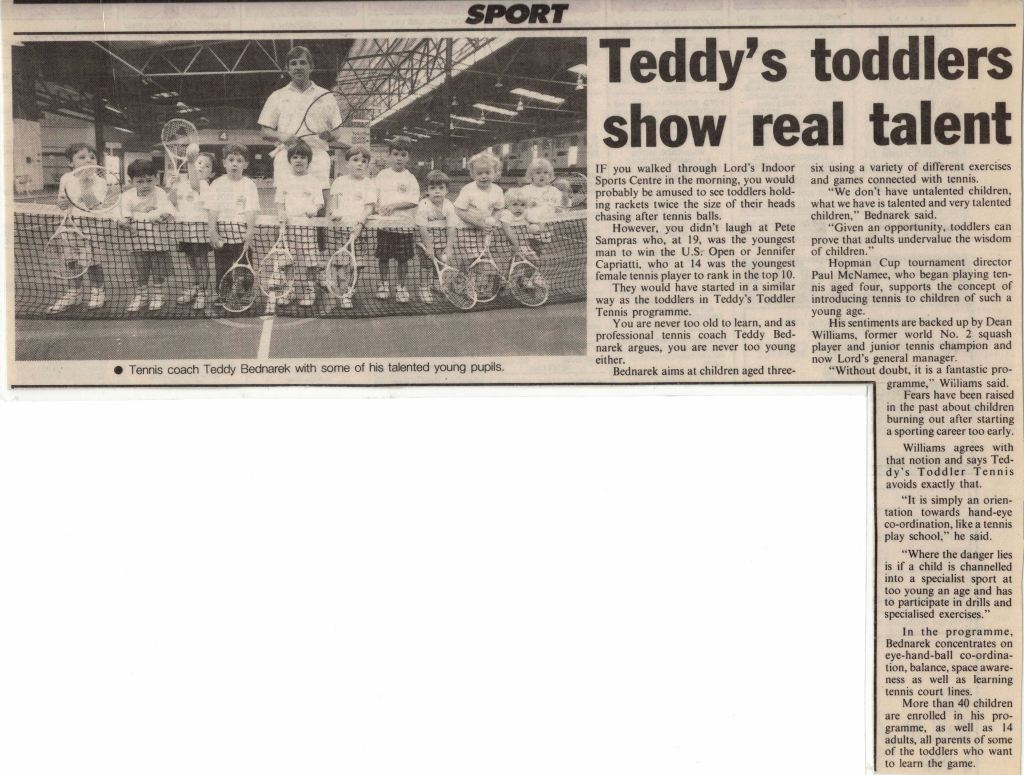 Former No. 3 World squash player Dean Williams backs Teddy’s sentiments about the benefits of starting tennis at an early age.